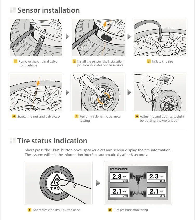 Calibration is not required for most element types. Devices from the factory are produced completely ready for operation. To activate them, you need to install them in the wheel and the system independently reads new sensors.