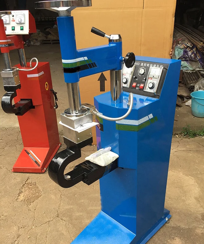 You put the patch on the tube, clamp it in the press, and set it on fire. When it cools off you're done and no vulcanizing cement is used. It's a old process that was used before they came out with vulcanizing cement.